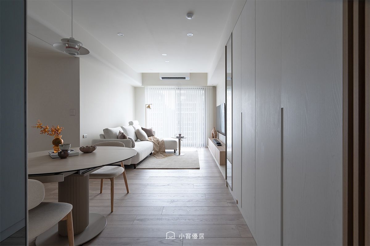 設計師 Zoey 不僅是在做空間裝修,更是在「調製」一種溫潤的生活氛圍。以「一杯完美比例的奶茶」為靈感,在 19 坪的格局中,透過高度的「色調一致性」與「微調動線」,優雅地解決新成屋常見的格局痛點。