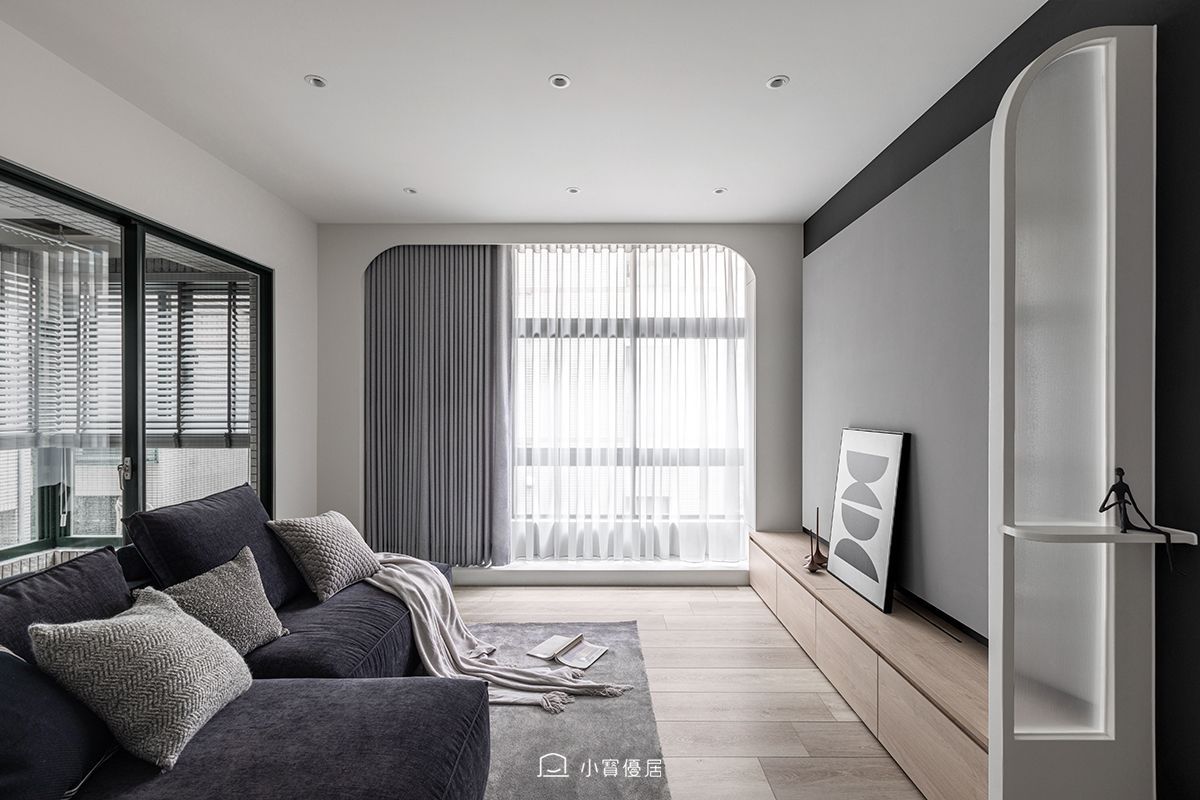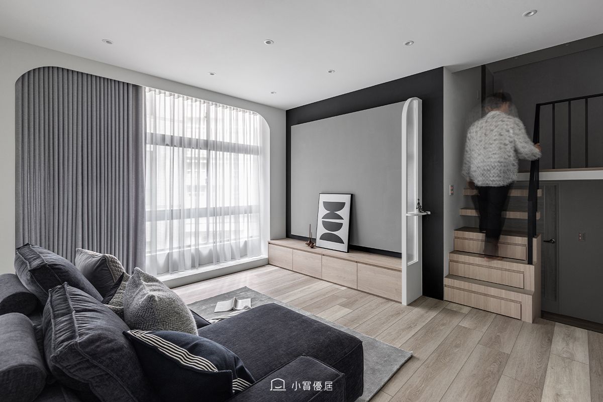 整體空間以極簡的黑、灰、白為主調,透過俐落的線條與色塊層次,在輕盈的背景中勾勒出沈穩的視覺重心。在良好的採光映襯下,強烈的色彩對比不僅沒有壓縮空間感,反而拉開了視覺景深,讓這處小宅在簡約中展現出強大的現代氣勢與獨特個性。