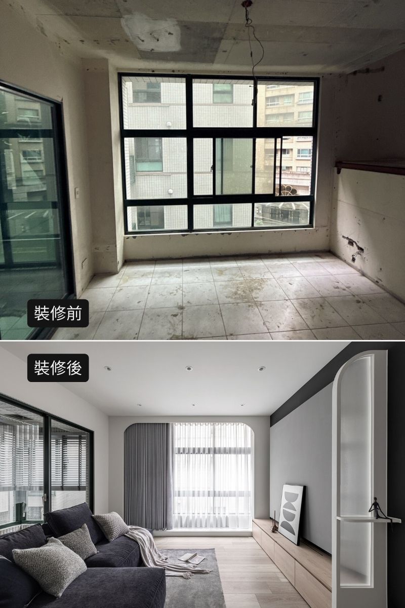在僅有13坪的樓中樓空間裡,要放入三房兩廳兩衛,甚至主臥有獨立更衣間,收納的規劃真的需要精算。設計師不僅利用空間最大化收納,更在解決基礎漏水工程的同時,將屋主喜愛的黑灰白風格注入空間,讓原本陰暗潮濕的老屋,搖身一變成為時尚俐落的現代寓所。